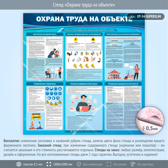 Стенд «Охрана труда на объекте» (OT-34-SUPERSLIM) в Ульяновске купить