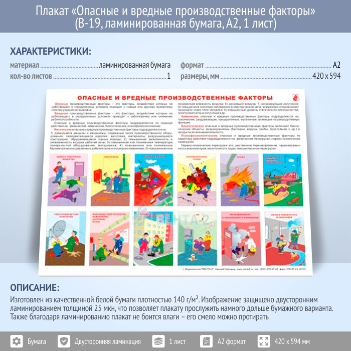 Плакат «Опасные и вредные производственные факторы» (В-19, ламинированная бумага, А2, 1 лист) в Ульяновске купить