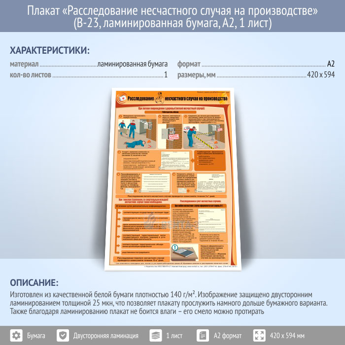 Плакат «Расследование несчастного случая на производстве» (В-23, ламинированная бумага, А2, 1 лист) в Ульяновске купить