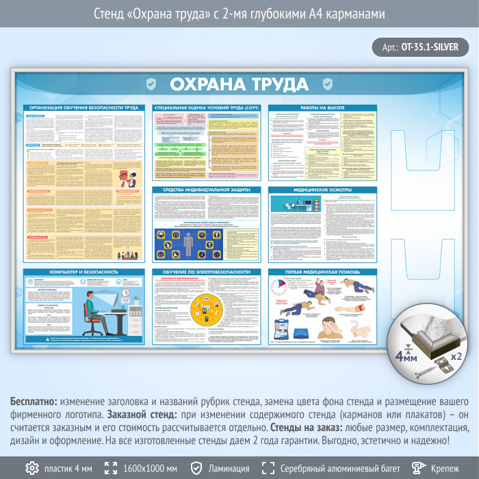 Стенд «Охрана труда» с 2-мя глубокими А4 карманами (OT-35.1-SILVER) в Ульяновске купить