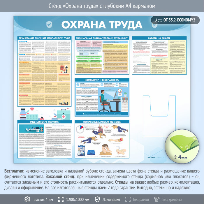 Стенд «Охрана труда» с глубоким А4 карманом (OT-35.2-ECONOMY2) в Ульяновске купить