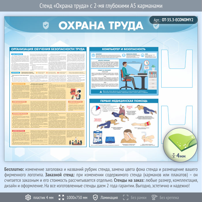 Стенд «Охрана труда» с 2-мя глубокими А5 карманами (OT-35.3-ECONOMY2) в Ульяновске купить