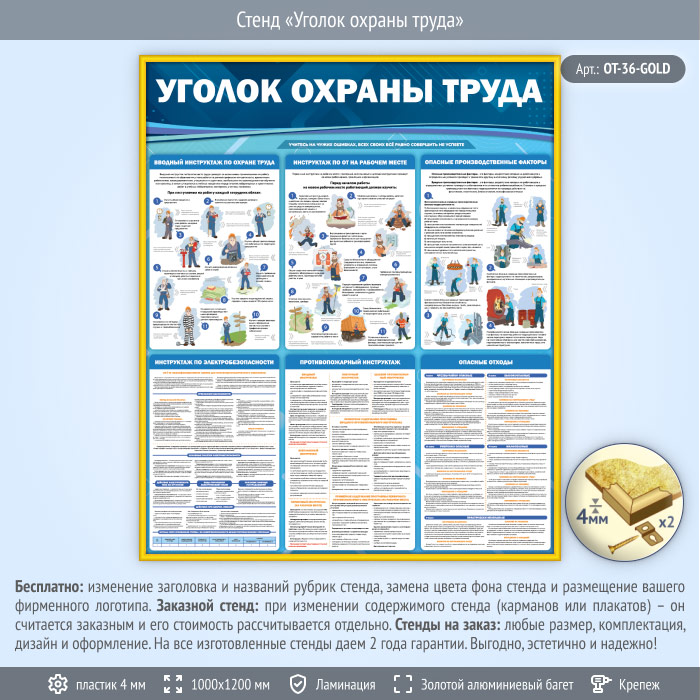 Стенд «Уголок охраны труда» (OT-36-GOLD) в Ульяновске купить