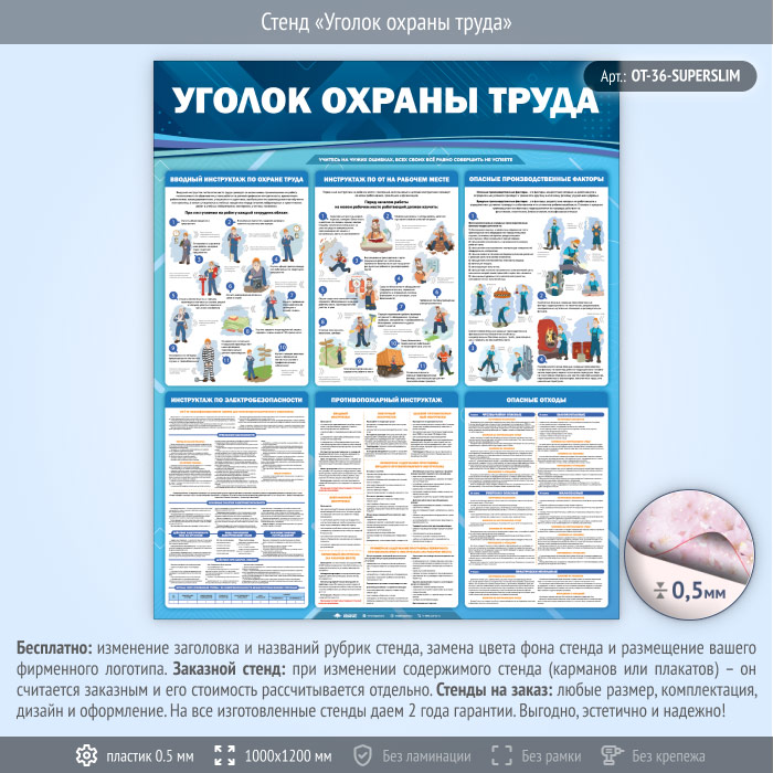 Стенд «Уголок охраны труда» (OT-36-SUPERSLIM) в Ульяновске купить