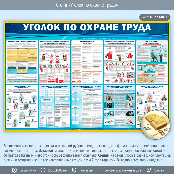 Стенд «Уголок по охране труда» (OT-37-GOLD) в Ульяновске купить