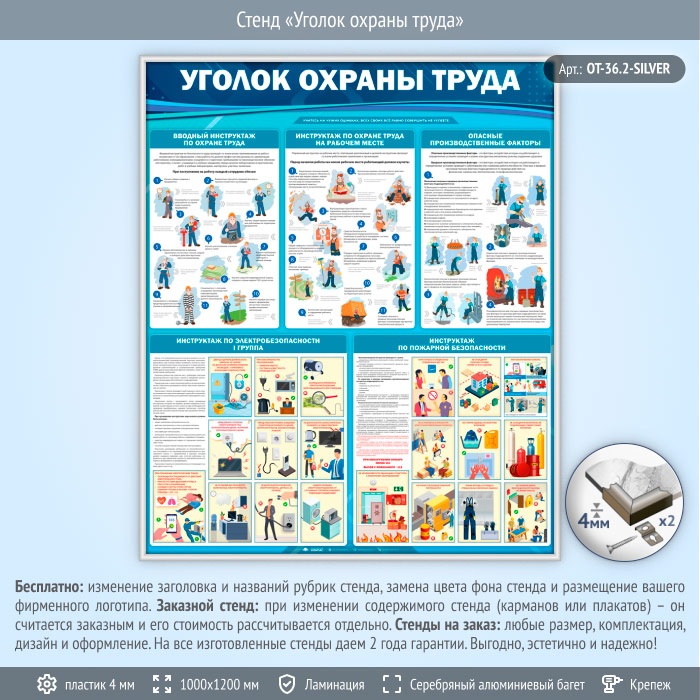 Стенд «Уголок охраны труда» (OT-36.2-SILVER) в Ульяновске купить