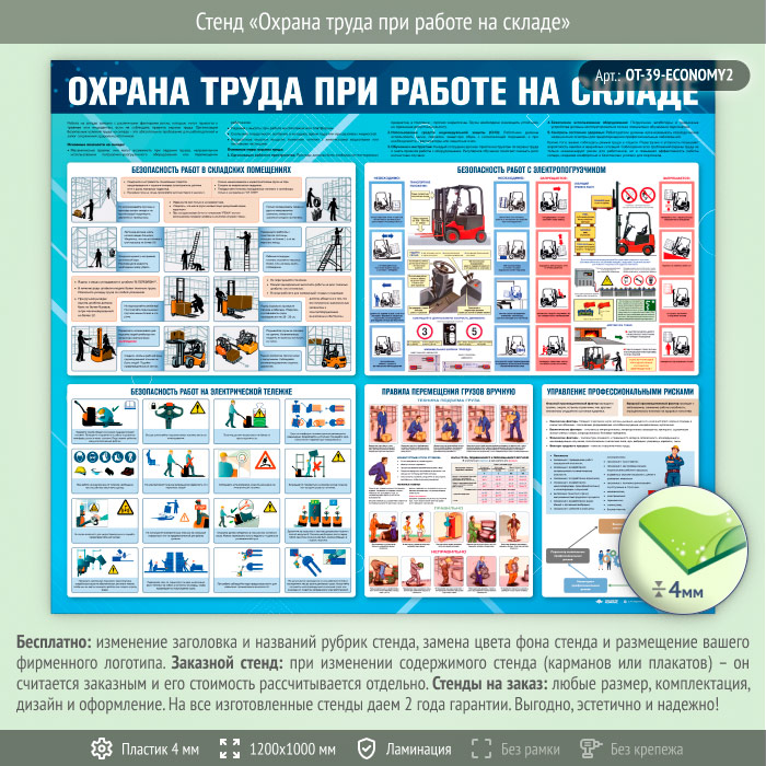 Стенд «Охрана труда при работе на складе» (OT-39-ECONOMY2) в Ульяновске купить