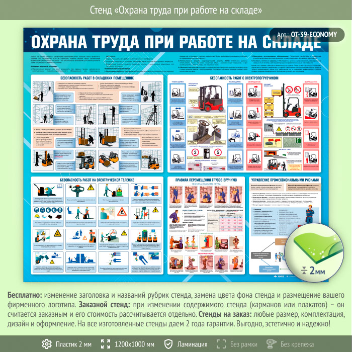 Стенд «Охрана труда при работе на складе» (OT-39-ECONOMY) в Ульяновске купить