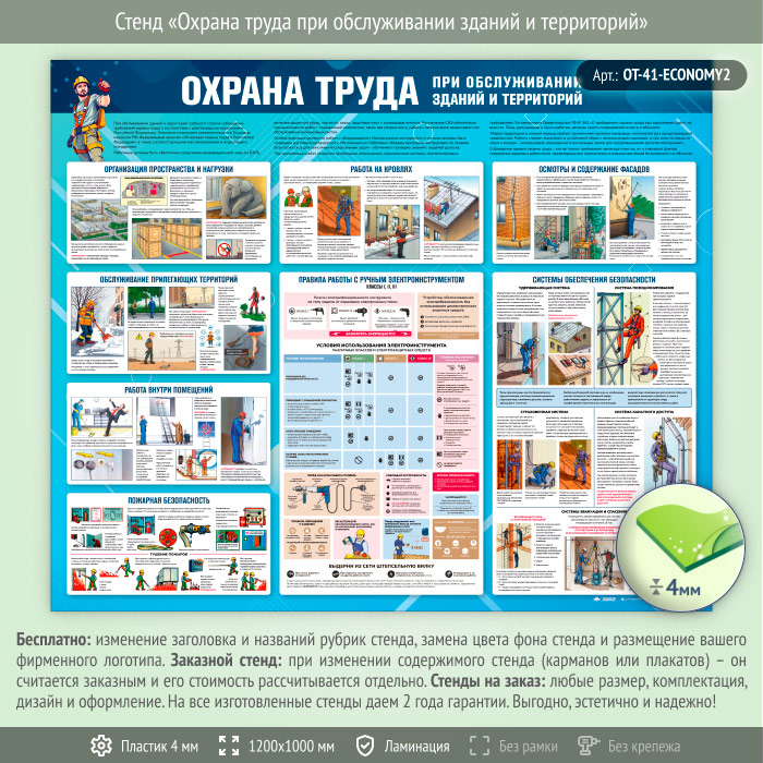 Стенд «Охрана труда при обслуживании зданий и территорий» (OT-41-ECONOMY2) в Ульяновске купить