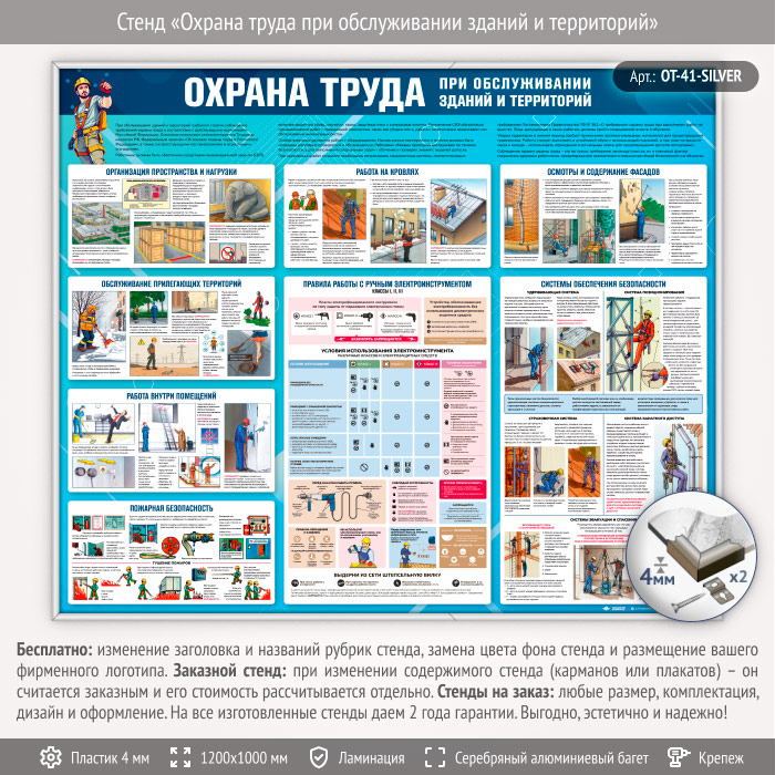 Стенд «Охрана труда при обслуживании зданий и территорий» (OT-41-SILVER) в Ульяновске купить