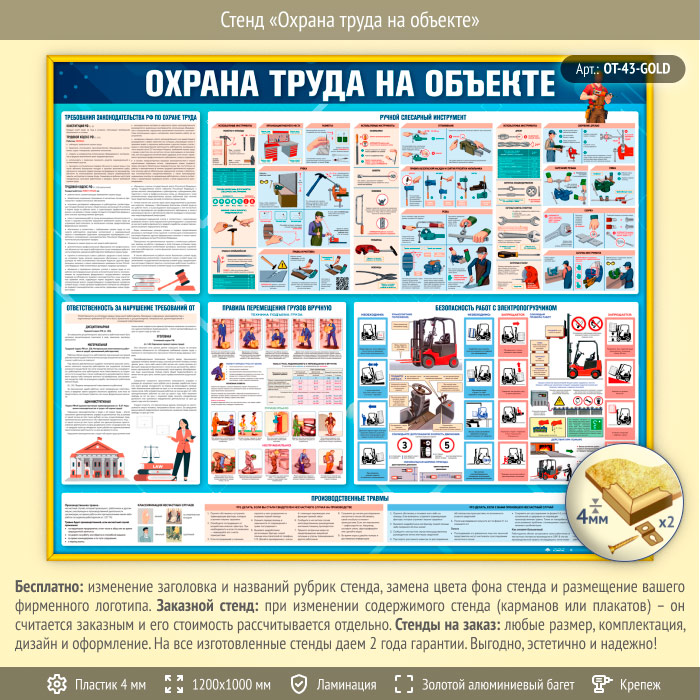 Стенд «Охрана труда на объекте» (OT-43-GOLD) в Ульяновске купить