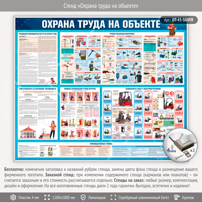 Стенд «Охрана труда на объекте» (OT-43-SILVER) в Ульяновске купить