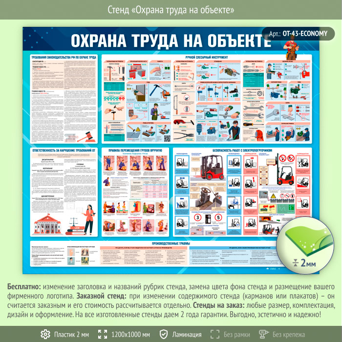 Стенд «Охрана труда на объекте» (OT-43-ECONOMY) в Ульяновске купить