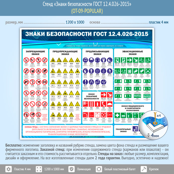 Стенд «Знаки безопасности ГОСТ 12.4.026-2015» (OT-09-POPULAR) в Ульяновске купить