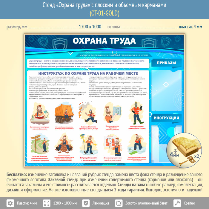 Стенд «Охрана труда» с плоским и объемным карманами (OT-01-GOLD) в Ульяновске купить