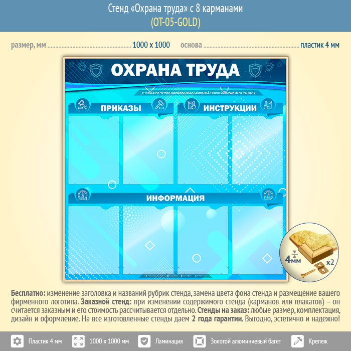 Стенд «Охрана труда» с 8 карманами (OT-05-GOLD) в Ульяновске купить