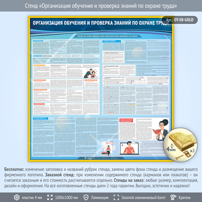 Стенд «Организация обучения и проверка знаний по охране труда» (OT-08-GOLD) в Ульяновске купить