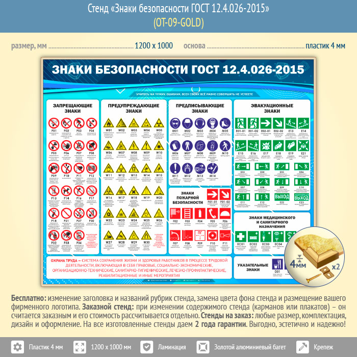 Стенд «Знаки безопасности ГОСТ 12.4.026-2015» (OT-09-GOLD) в Ульяновске купить