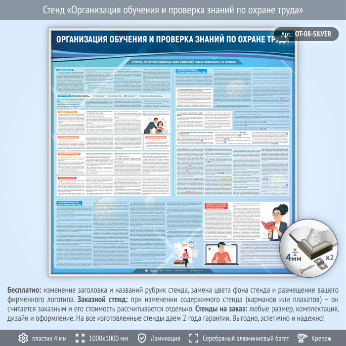 Стенд «Организация обучения и проверка знаний по охране труда» (OT-08-SILVER) в Ульяновске купить