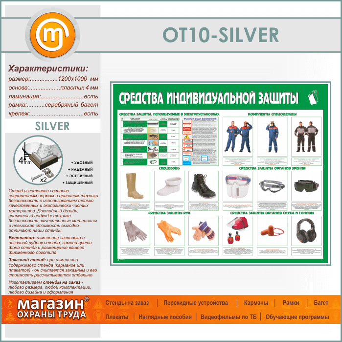Стенд «Средства индивидуальной защиты» (OT-10-SILVER) в Ульяновске купить