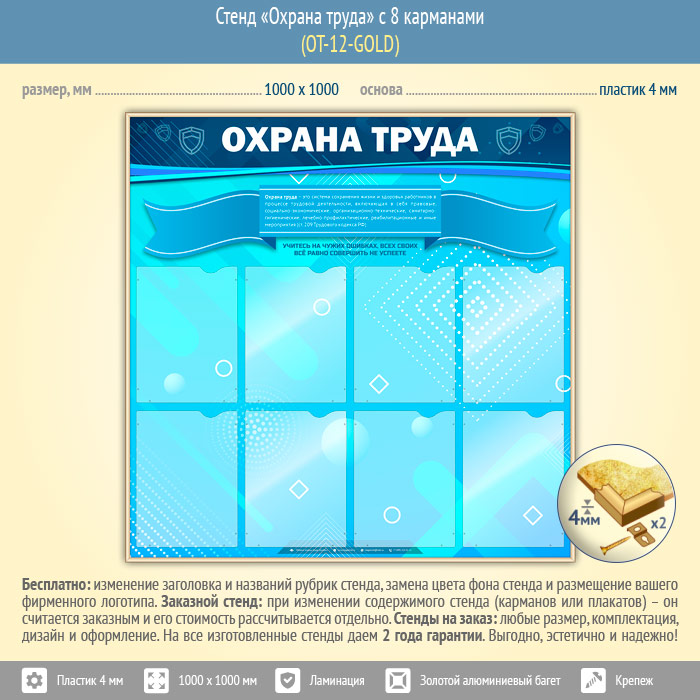 Стенд «Охрана труда» с 8 карманами (OT-12-GOLD) в Ульяновске купить