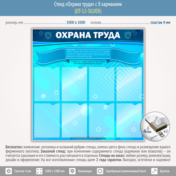 Стенд «Охрана труда» с 8 карманами (OT-12-SILVER) в Ульяновске купить