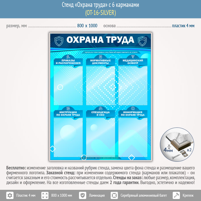 Стенд «Охрана труда» с 6 карманами (OT-16-SILVER) в Ульяновске купить