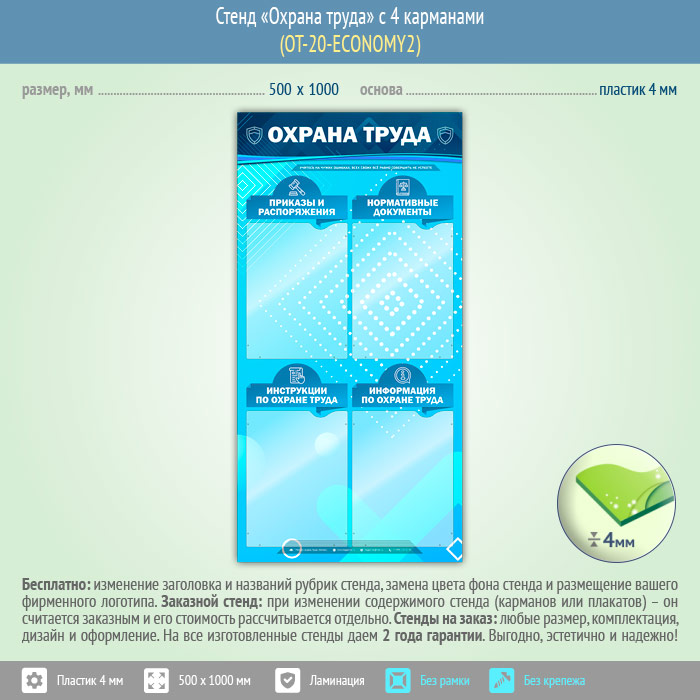 Стенд «Охрана труда» с 4 карманами (OT-20-ECONOMY2) в Ульяновске купить