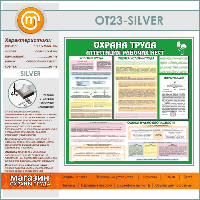 Стенд «Охрана труда. Аттестация рабочих мест» с карманом (OT-23-SILVER) в Ульяновске купить