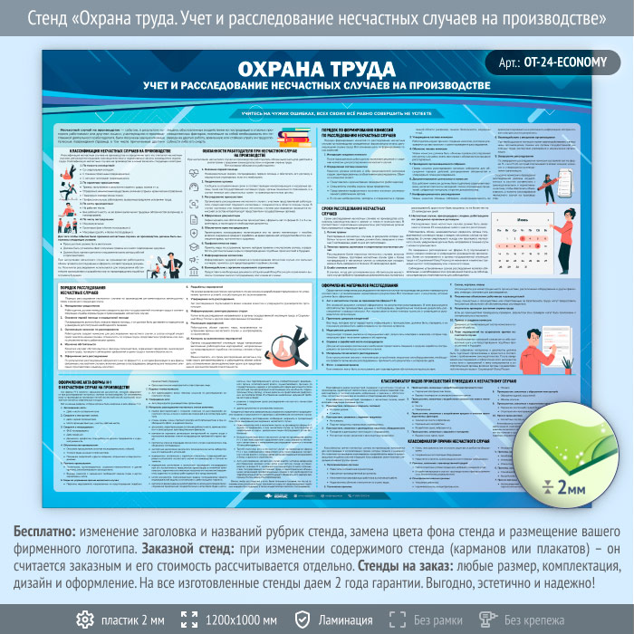 Стенд «Охрана труда. Учет и расследование несчастных случаев на производстве» (OT-24-ECONOMY) в Ульяновске купить
