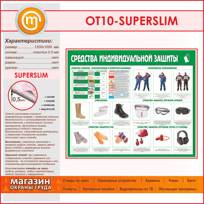 Стенд «Средства индивидуальной защиты» (OT-10-SUPERSLIM) в Ульяновске купить