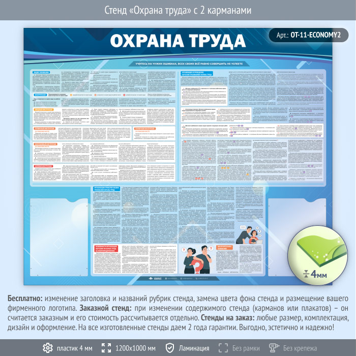 Стенд «Охрана труда» с 2 карманами (OT-11-ECONOMY2) в Ульяновске купить
