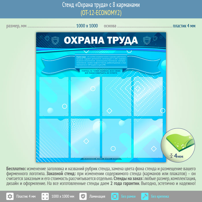 Стенд «Охрана труда» с 8 карманами (OT-12-ECONOMY2) в Ульяновске купить