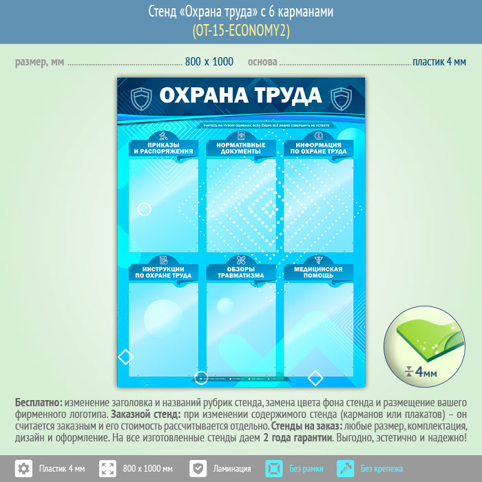 Стенд «Охрана труда» с 6 карманами (OT-15-ECONOMY2) в Ульяновске купить