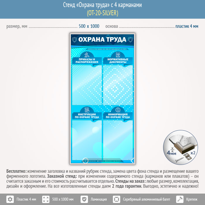 Стенд «Охрана труда» с 4 карманами (OT-20-SILVER) в Ульяновске купить