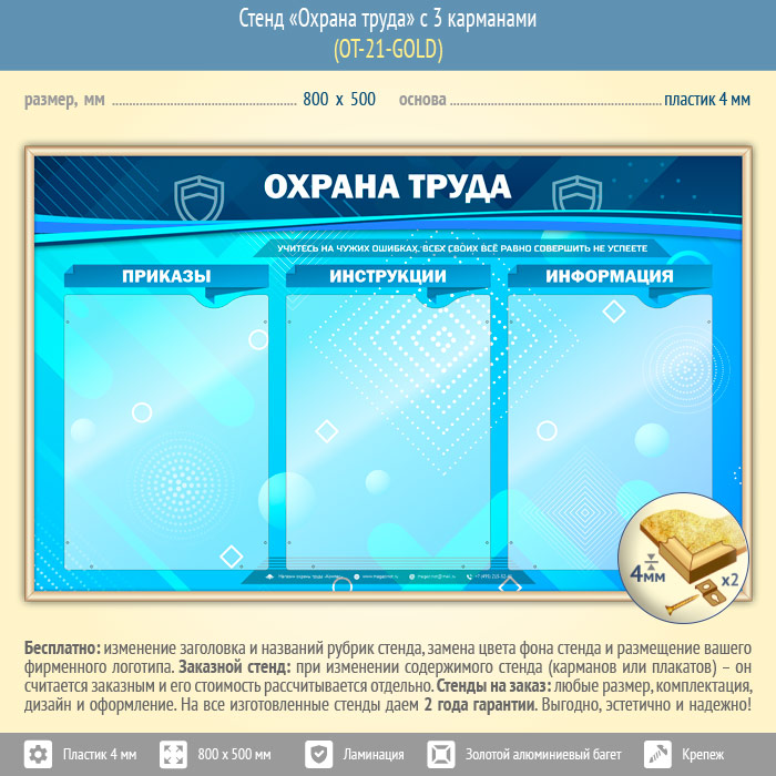 Стенд «Охрана труда» с 3 карманами (OT-21-GOLD) в Ульяновске купить
