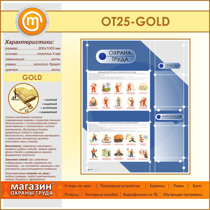 Стенд «Охрана труда» с 2 плоскими карманами (OT-25-GOLD) в Ульяновске купить
