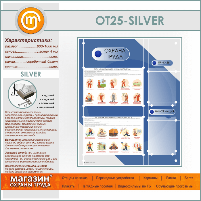 Стенд «Охрана труда» с 2 плоскими карманами (OT-25-SILVER) в Ульяновске купить