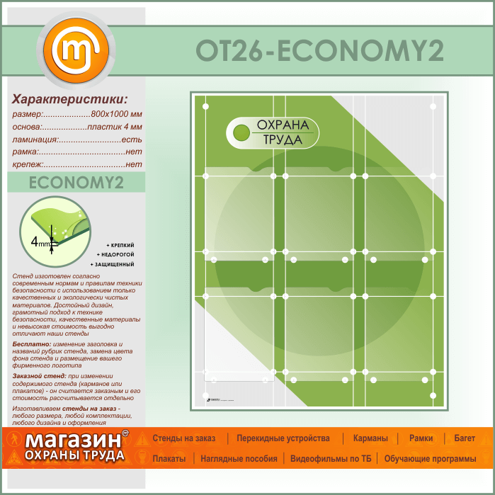 Стенд «Охрана труда» с 6 плоскими карманами (OT-26-ECONOMY2) в Ульяновске купить