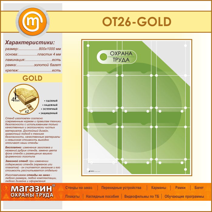 Стенд «Охрана труда» с 6 плоскими карманами (OT-26-GOLD) в Ульяновске купить