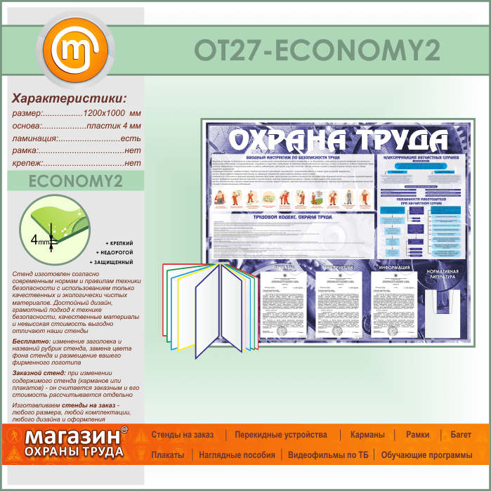 Стенд «Охрана труда» с перекидной системой, 3 плоскими и 1 объемным карманом (OT-27-ECONOMY2) в Ульяновске купить