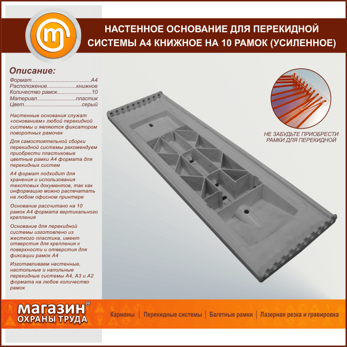 Настенное основание для перекидной системы А4 книжное на 10 рамок (усиленное) в Ульяновске купить