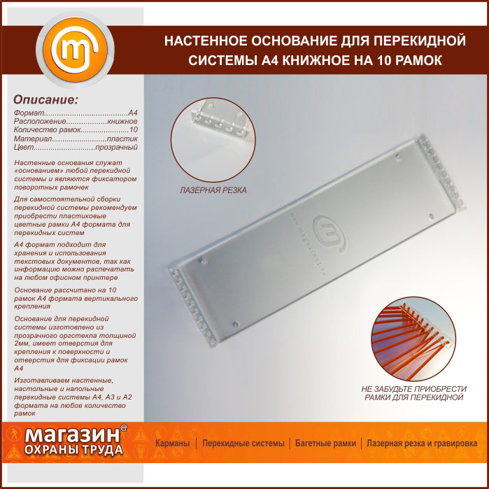 Настенное основание для перекидной системы А4 книжное на 10 рамок (оргстекло) в Ульяновске купить