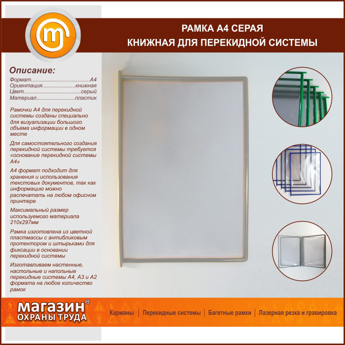 Рамка А4 серая книжная в Ульяновске купить