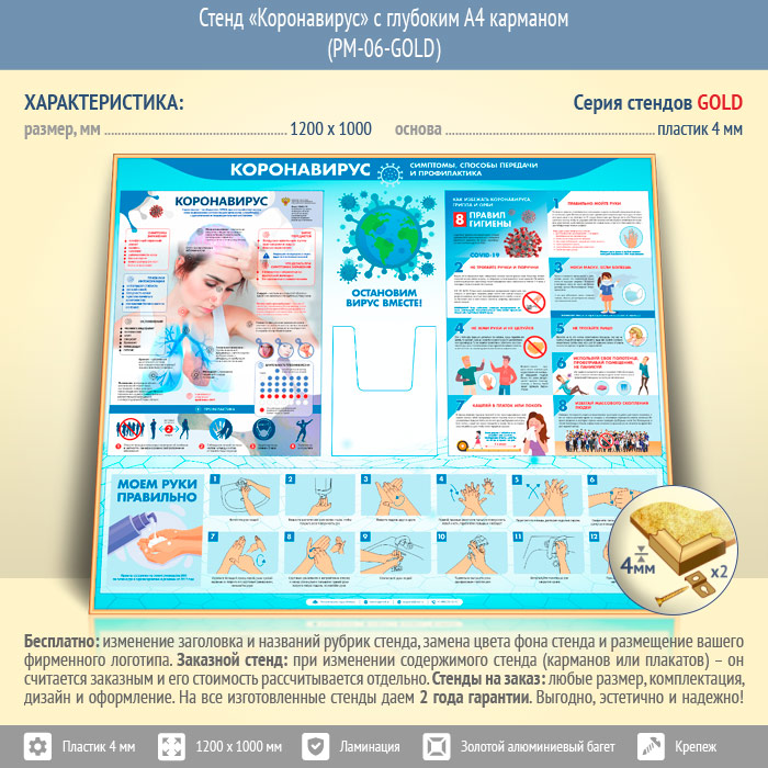 Стенд «Коронавирус» с глубоким А4 карманом (PM-06-GOLD) в Ульяновске купить