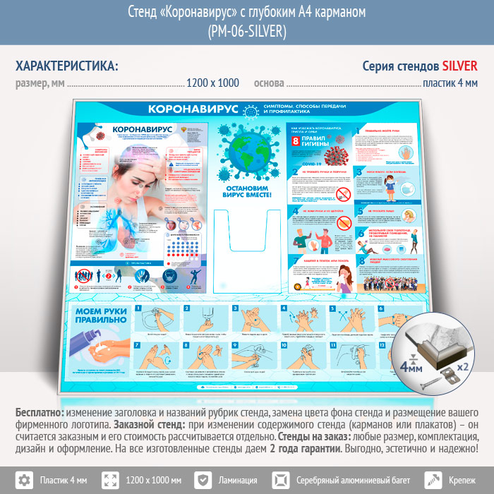 Стенд «Коронавирус» с глубоким А4 карманом (PM-06-SILVER) в Ульяновске купить