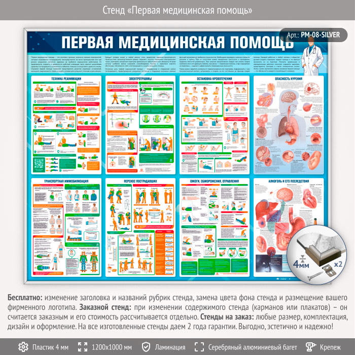 Стенд «Первая медицинская помощь» (PM-08-SILVER) в Ульяновске купить