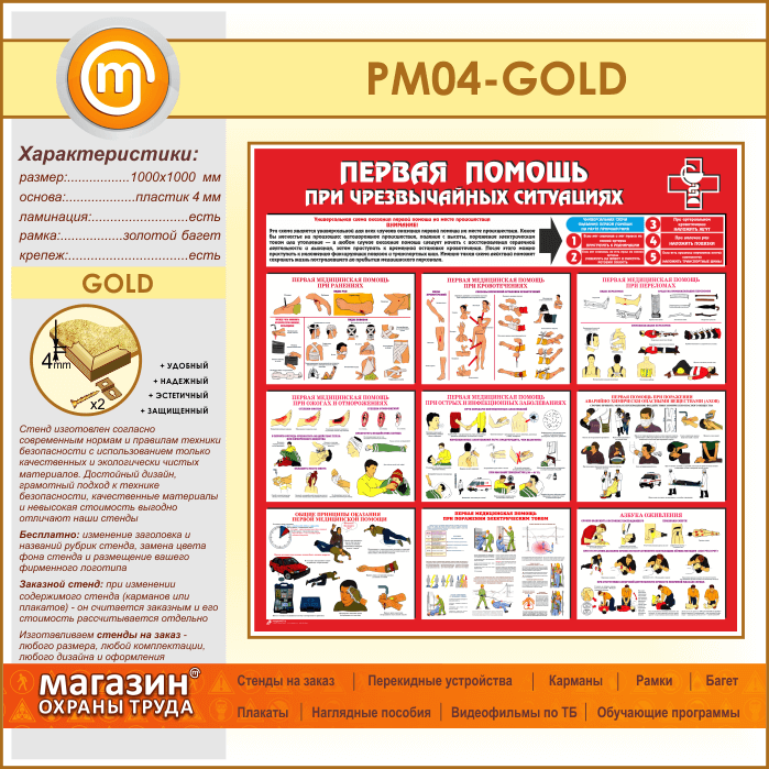 Стенд «Первая помощь при чрезвычайных ситуациях» (PM-04-GOLD) в Ульяновске купить