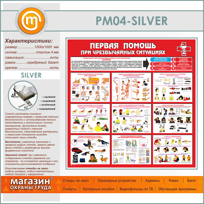 Стенд «Первая помощь при чрезвычайных ситуациях» (PM-04-SILVER) в Ульяновске купить