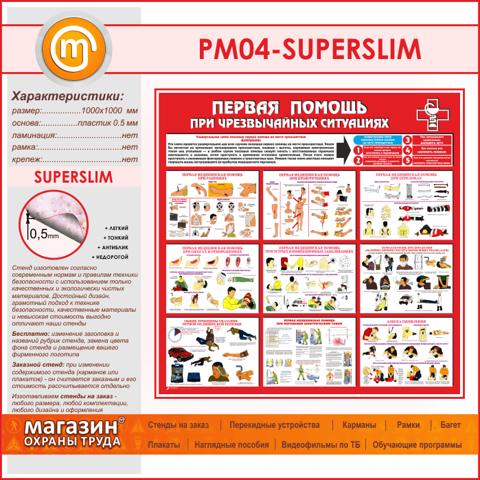 Стенд «Первая помощь при чрезвычайных ситуациях» (PM-04-SUPERSLIM) в Ульяновске купить